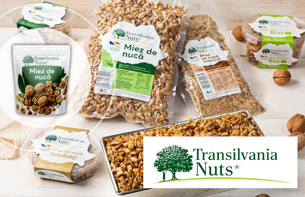 With 100% Romanian capital, we became in 5 years one of the largest nut processors in Eastern Europe. In 2019, we opened the most modern walnut processing plant in Central and Eastern Europe, operating according to the highest quality standards. Since 2016, our work has been ISO 9001 (Quality Management) certified, and in 2019 we also obtained IFS (food standard) and Ecocert (organic farming) certifications. The company processes about 7,600 tons of walnuts per year, and the walnut kernels from Transilvania Nuts reach more than 23 countries. Our products include 80 different varieties, available both for the Romanian market and for export.